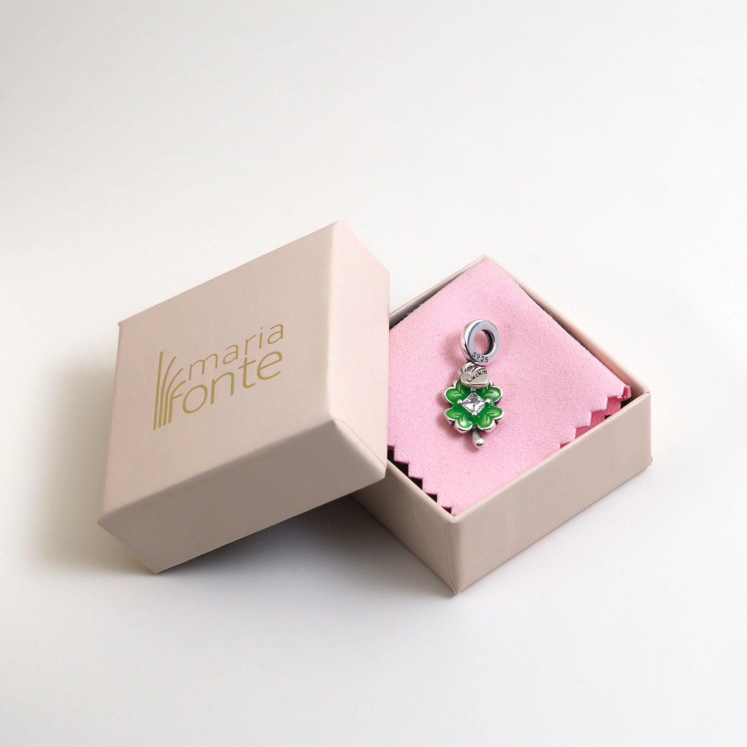 MariaFonte Bracciale Flessibile con Clip Quadrifoglio con Zirconi Verde Compatibile con Charm Pandora