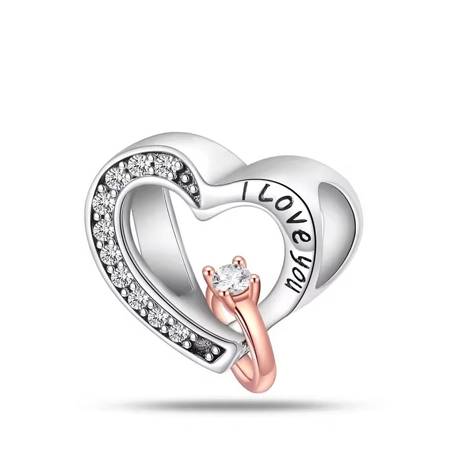 MariaFonte Bracciale Semi-Rigido con Clip a forma di Cuore con Brillantini di Zirconia Compatibile con Charm Pandora