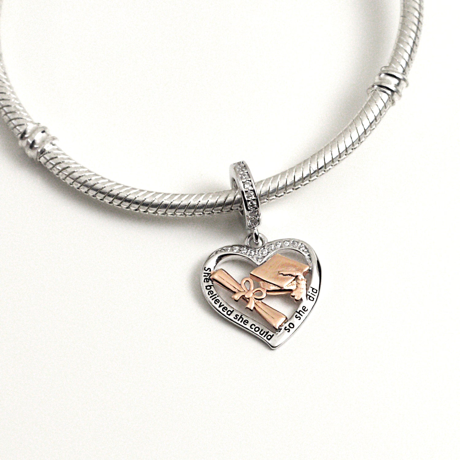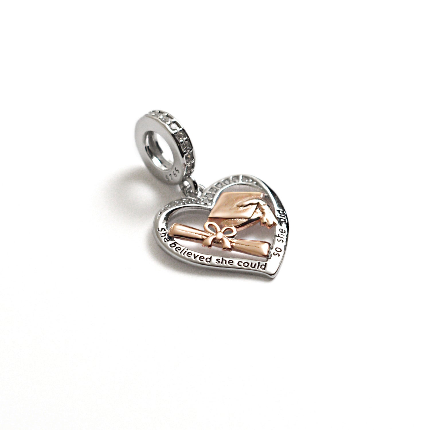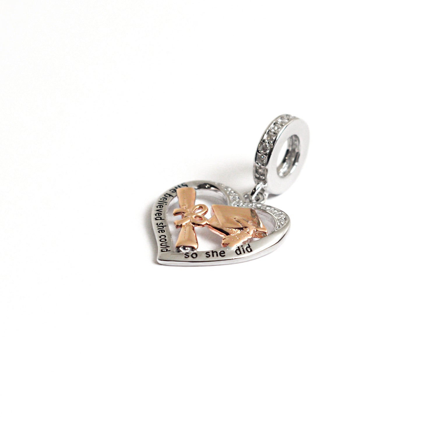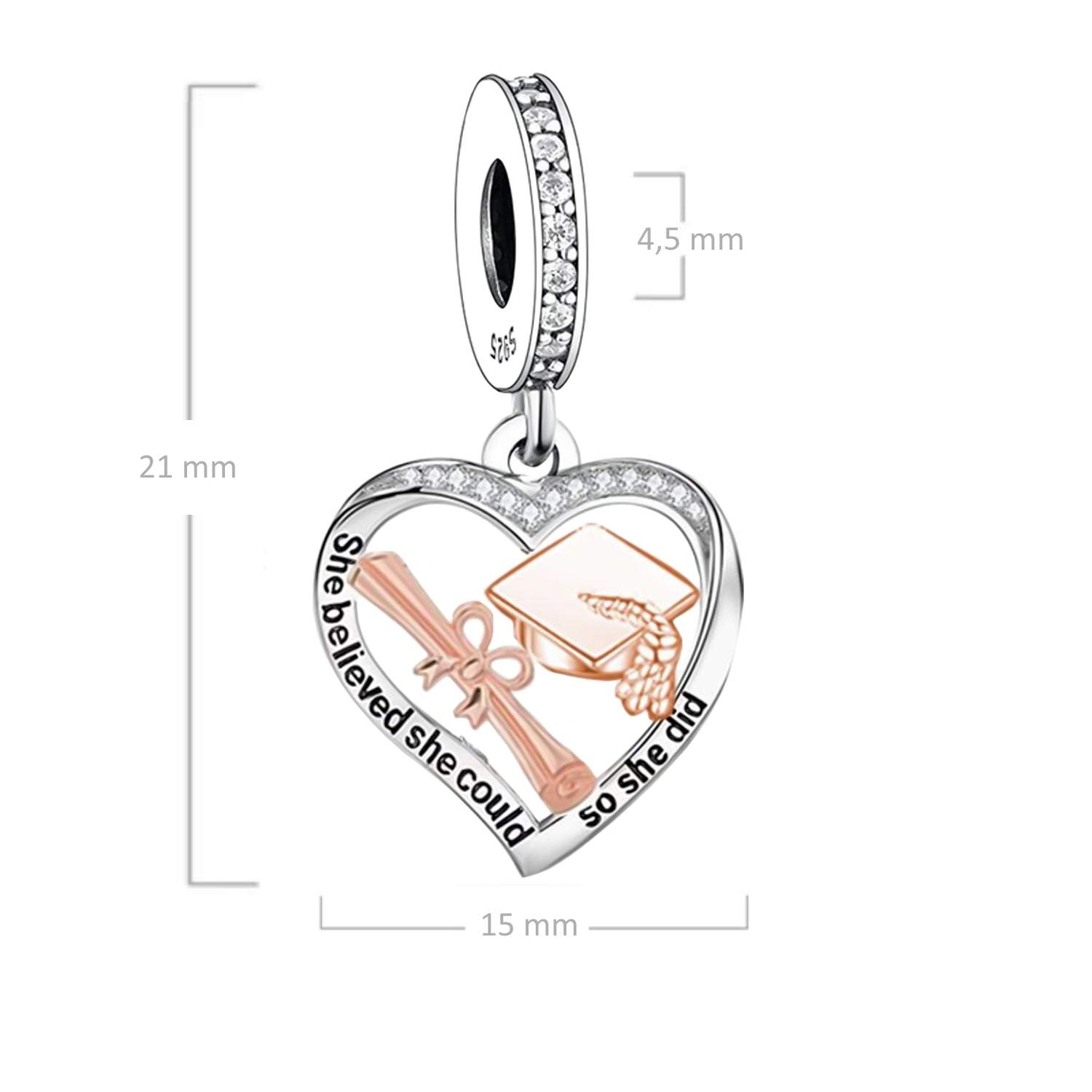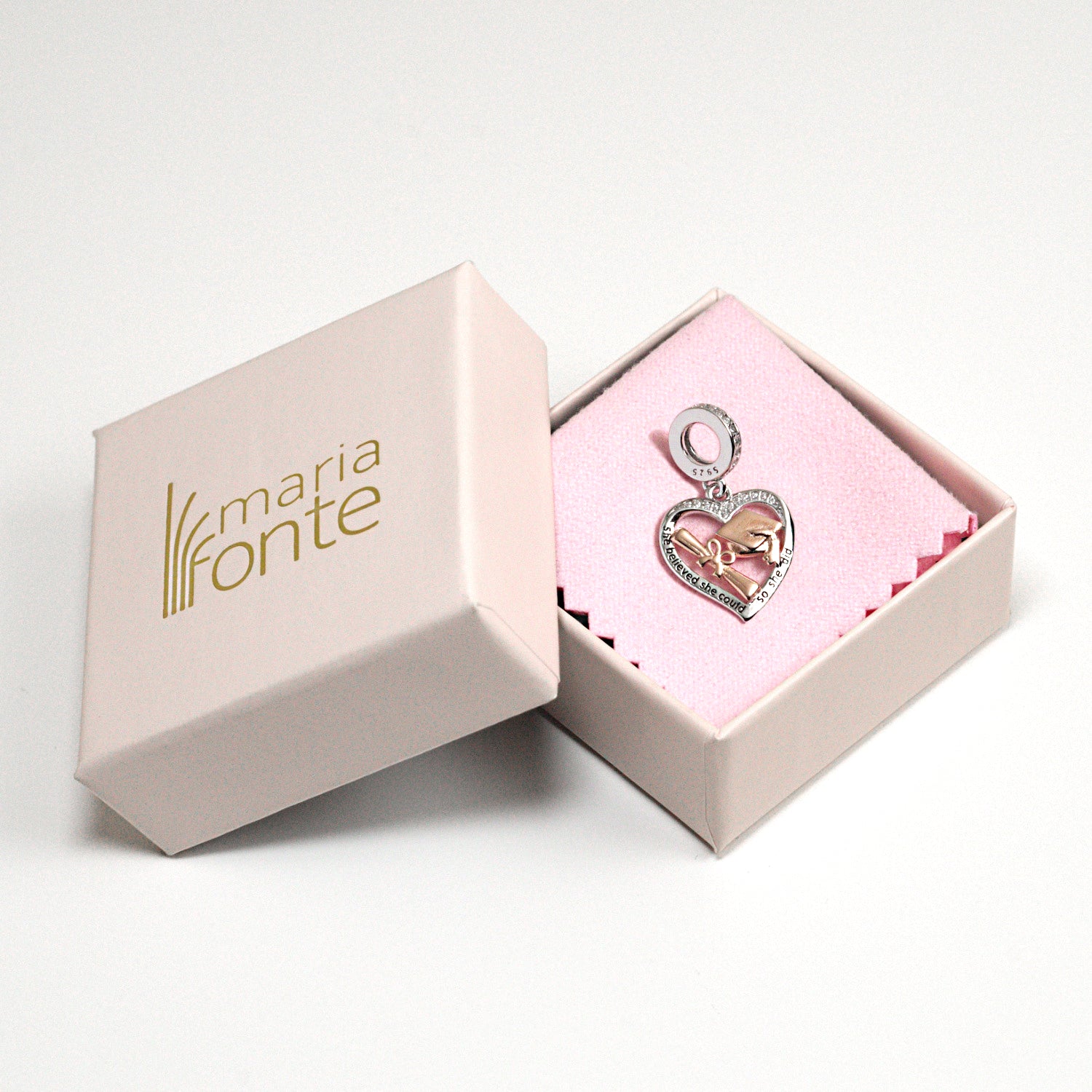 MariaFonte Charm Cuore Laurea Diploma Pergamena Cappello Portafortuna Argento 925 Zirconia Compatibile con Collane e Bracciali Pandora