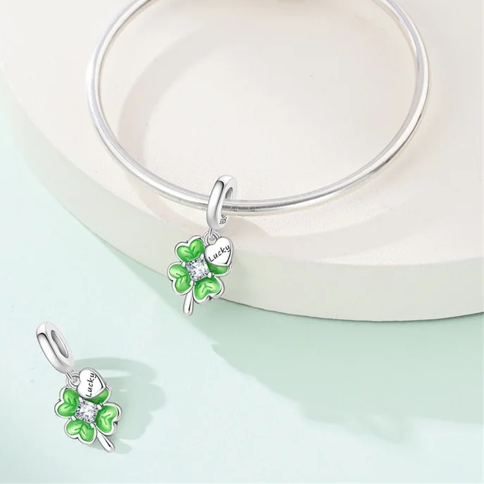 MariaFonte Bracciale Flessibile con Clip Quadrifoglio con Zirconi Verde Compatibile con Charm Pandora