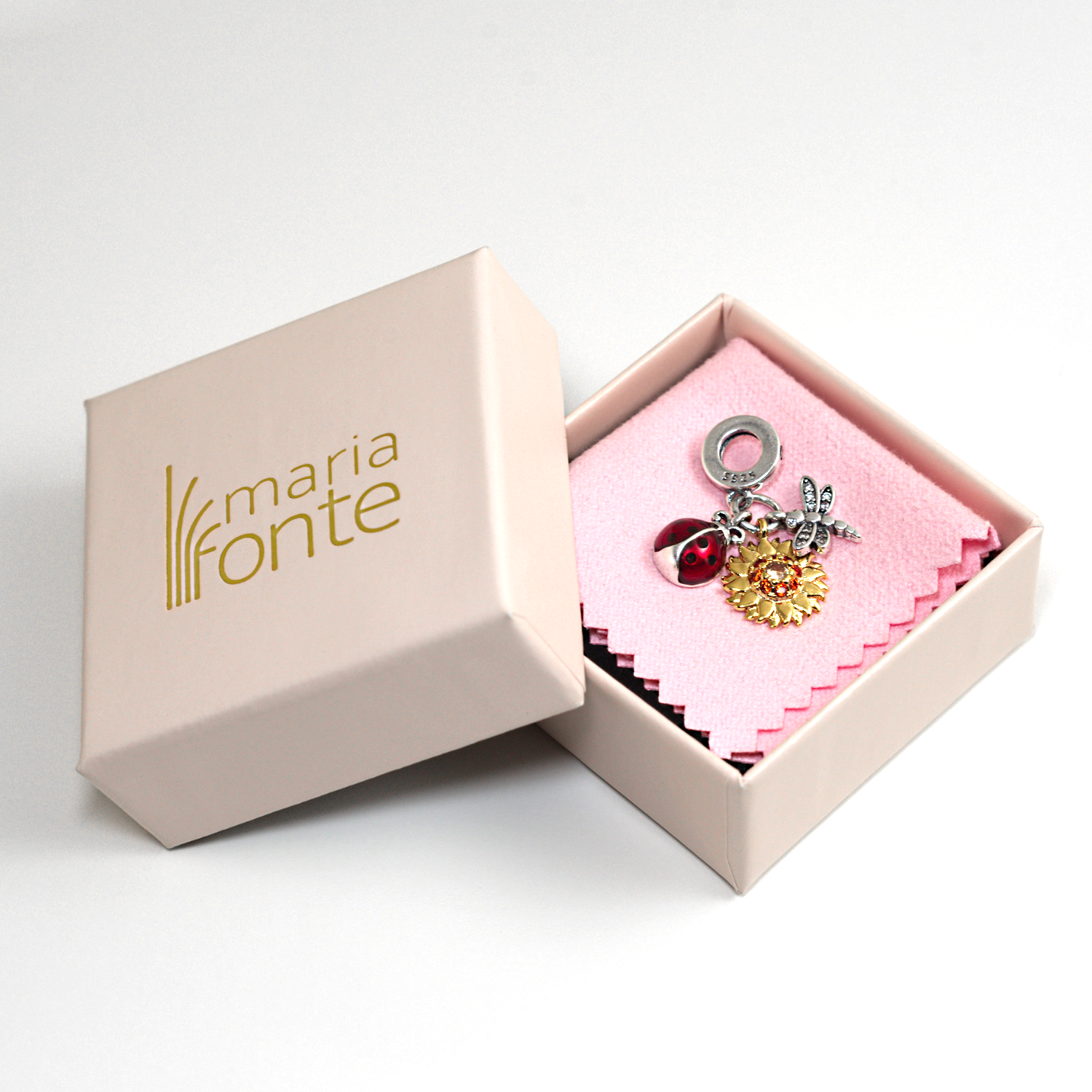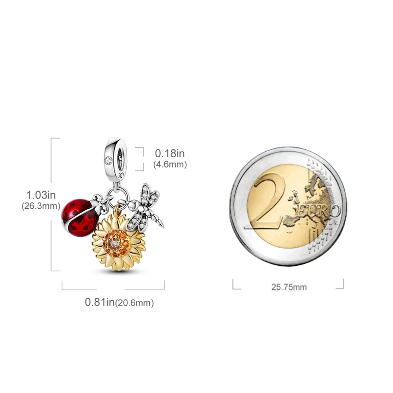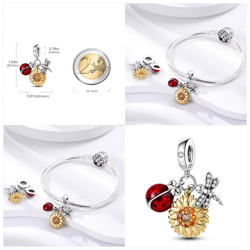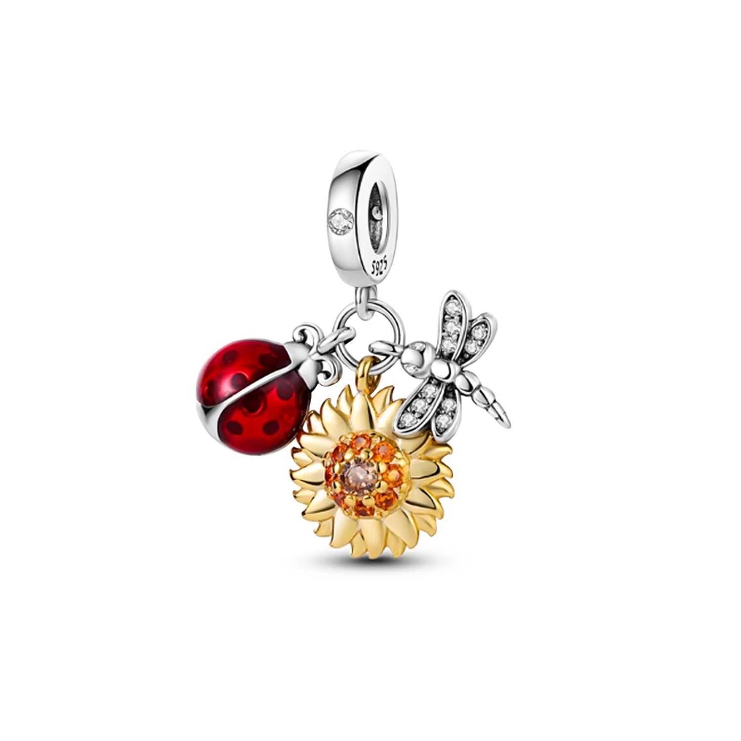 MariaFonte Charm Ciondolo Pendente Portafortuna Coccinella Sole Libellula Argento 925 Compatibile con Collane e Bracciali Pandora
